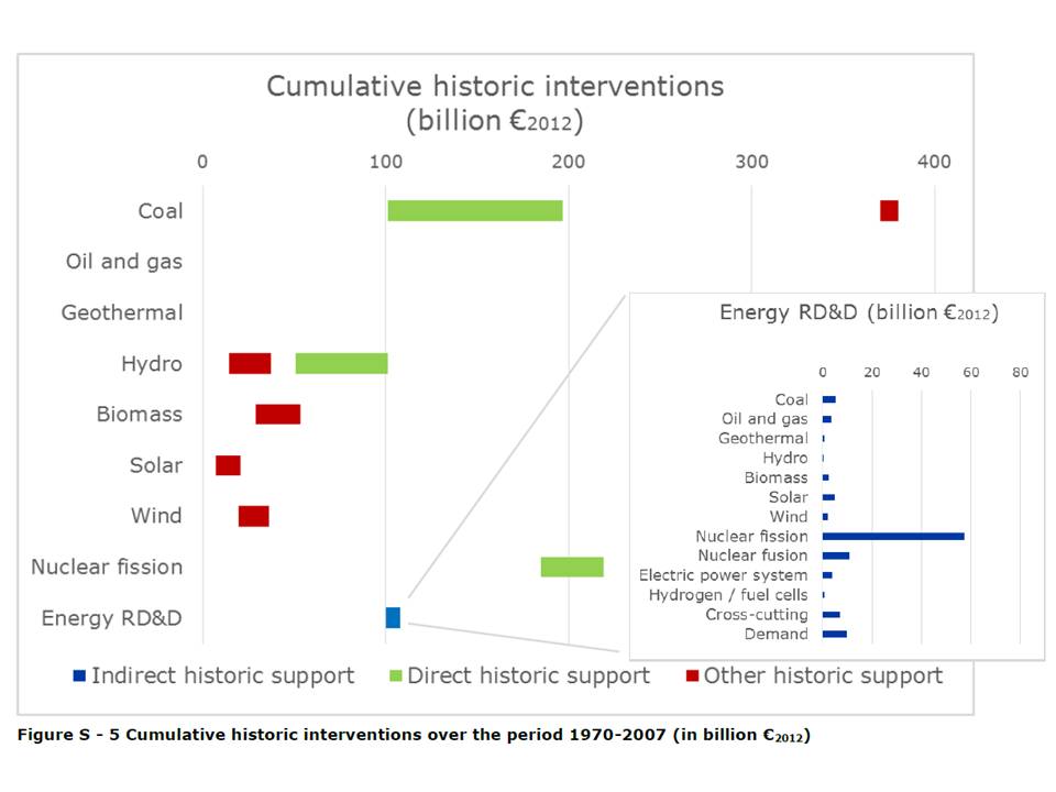 My overall reading from this report is that renewable energies seem to have a currently high level of support from the EU; that there is still room for further subsidies based on the cumulative support that fossil fuels and nuclear energy have received during the past 40 years; that the social costs of both fossil fuels and nuclear energy are larger than those of renewables and consequently any policy should carefully consider these in the full costs of energy mix; that renewable energy is competitive once all the additional costs are figured in.
