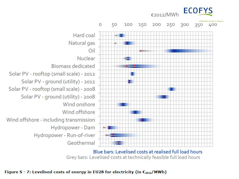 A new report, by order of the European Commission, studying the Subsidies and costs of EU energy just came out (published by Ecofys. KPMG and the Centre for Social and Economic Research). This study is particular noteworthy since it is one of the first that attempts to provide useful data on energy costs and subsidies for all EU Member States and for all technologies. Here is a quick summary of the most interesting findings as well as some thoughts and discussions.