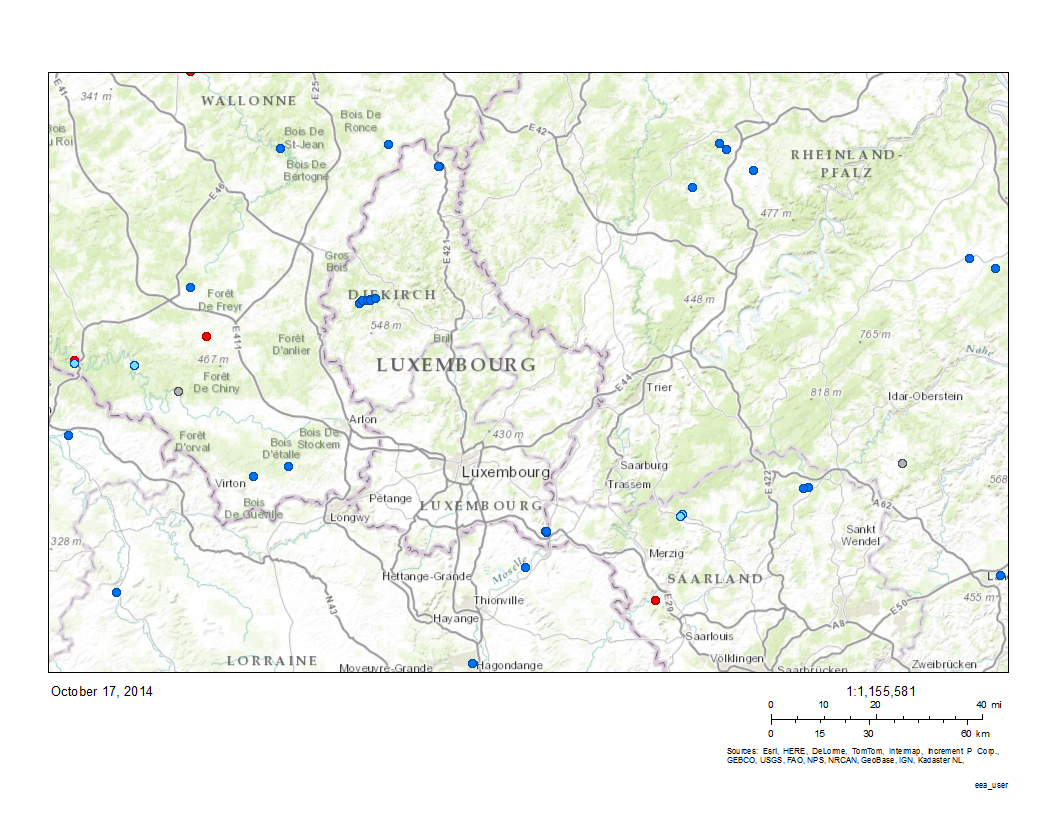 Now, for all my Luxembourgish readers, I attach you a map of the places where the EEA sampled water quality in Luxembourg and around, see below. I would, just out of concreteness, add three marginal reservations to the water quality test results: