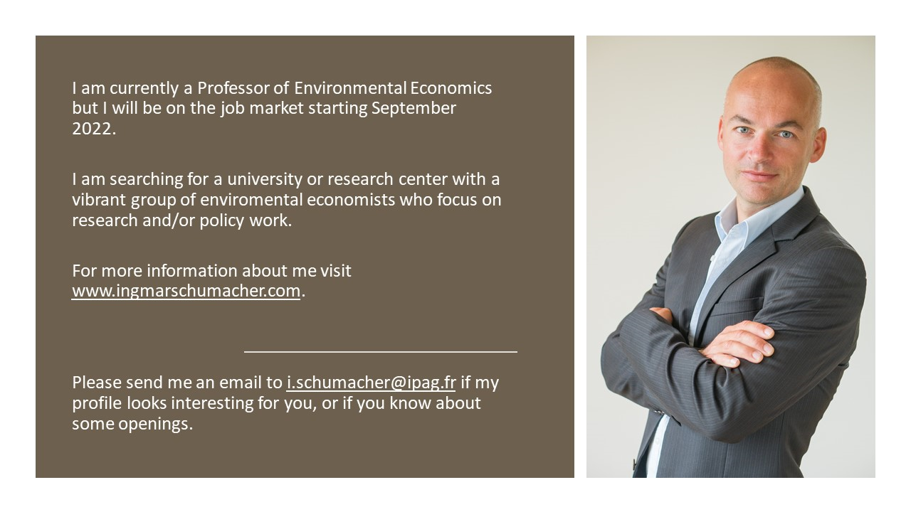 Please send me an email to ingmar.schumacher@ipag.fr if my profile looks interesting for you, or if you know about some openings.